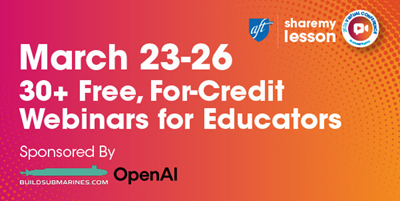 Join Share My Lesson March 23–26 for the 2026 Virtual Conference—four days featuring 30+ all-new webinars and free, for-credit professional development for PreK–higher education teachers and school staff.